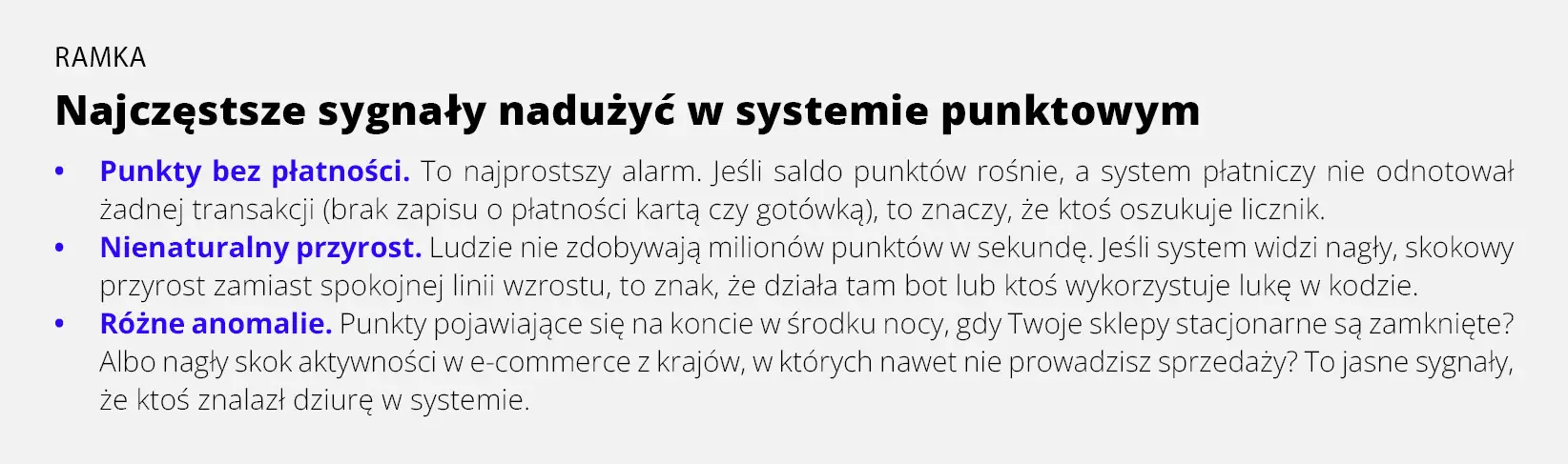 Traktuj swój program lojalnościowy jak system bankowy. Punkty to wirtualna waluta – jeśli można ją łatwo dodrukować lub ukraść, Twój biznes poniesie realne straty finansowe i wizerunkowe.