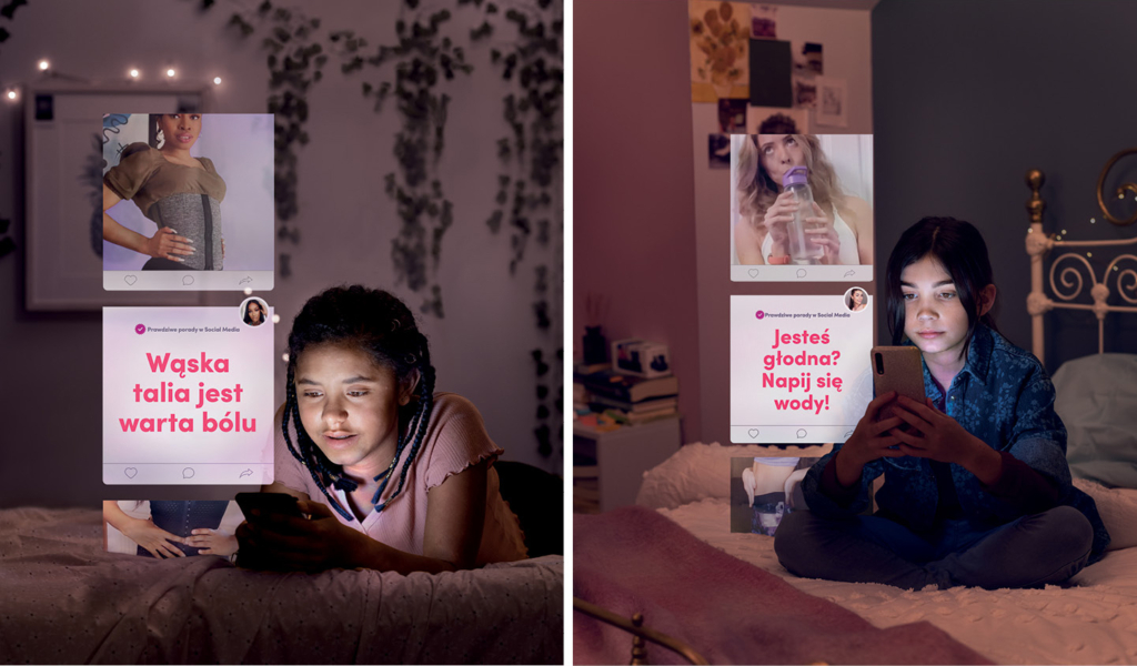 „Jesteś głodna? Napij się wody!”, „Chcesz się pozbyć cellulitu? Owiń się folią spożywczą!” – to przykłady porad, z jakimi każdego dnia stykają się polskie nastolatki, przeglądając social media. Dzięki tym wskazówkom mają osiągnąć cel – wyglądać jak influencerki, które obserwują. W rzeczywistości tego typu treści są niezwykle toksyczne, wpływają negatywnie na samoocenę i poczucie własnej wartości, niszczą zdrowie psychiczne nastolatek oraz narażają je na konsekwencje zdrowotne.