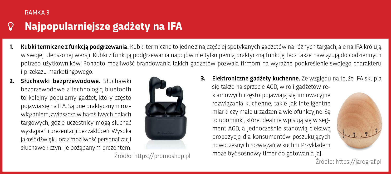 Wielu producentów gadżetów prześciga się nie tylko w unikatowym designie, lecz także w funkcjonalności swoich produktów. Światowe targi, takie jak IFA w Berlinie, CES w Las Vegas, Mobile World Congress w Barcelonie czy Canton Fair w Chinach, są doskonałą platformą do prezentacji najnowszych trendów w tej dziedzinie. To właśnie tam marki konkurują o uwagę uczestników przez oferowanie coraz bardziej zaawansowanych, ekologicznych i spersonalizowanych upominków.