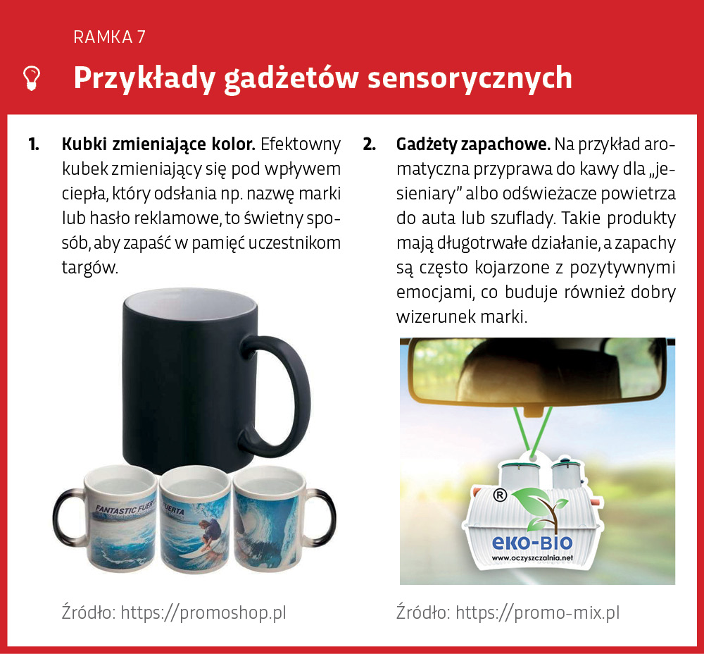 Ten trend jest wisienką na torcie, ponieważ marketing sensoryczny zyskuje na popularności. Marki wiedzą, że angażowanie wielu zmysłów w jednym momencie może mieć silniejszy wpływ na konsumentów. Coraz częściej na targach i eventach da więc spotkać gadżety reklamowe, które działają na dotyk, wzrok, a nawet węch.