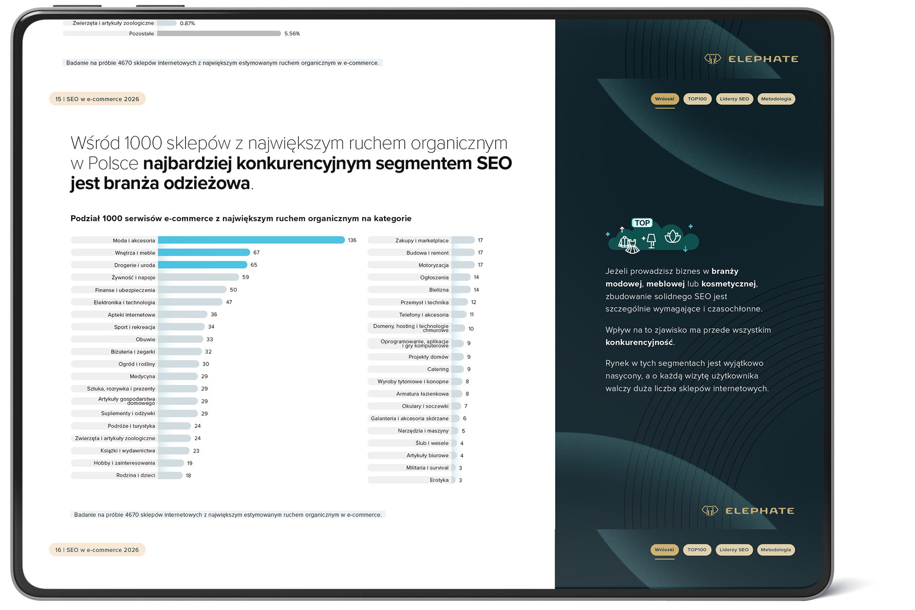Raport analizuje TOP100 liderów SEO w Polsce oraz segmentowe rankingi TOP20 w 40 branżach polskiego sektora e-commerce..