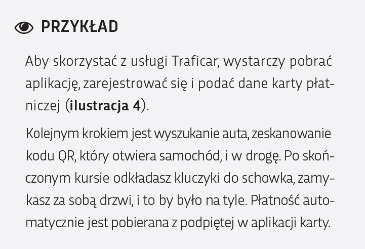 Odchodząc na moment od tematu e-commerce, na polskim rynku można zobaczyć przykłady bardzo ciekawych wdrożeń płatności kartami. Jednym z nich jest model wykorzystywany w usłudze carsharingowej dostarczanej przez Traficar.