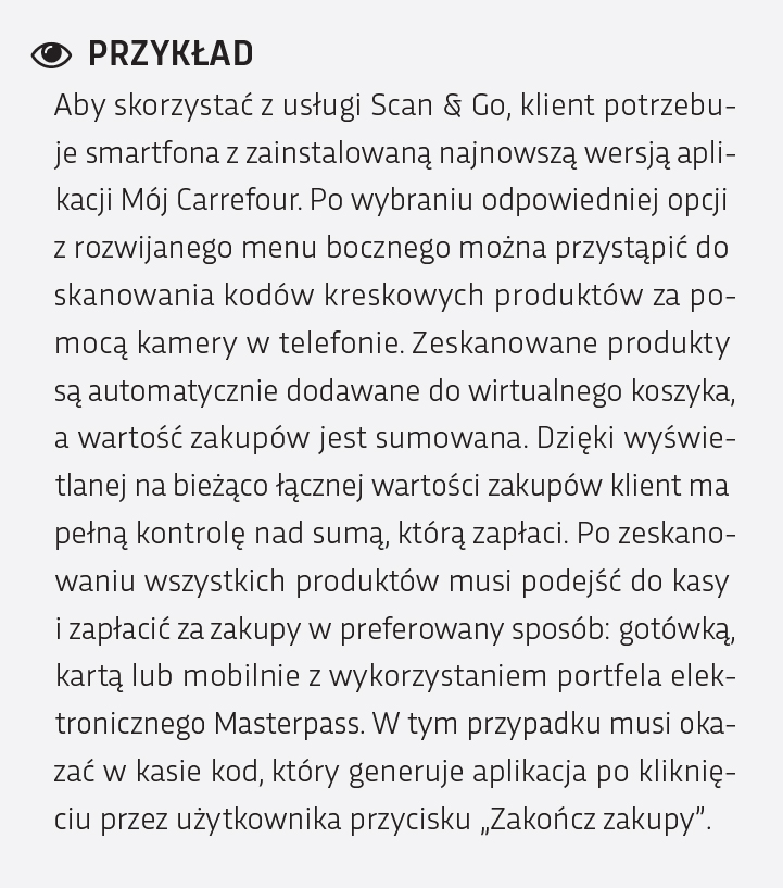 Masterpass udostępniony został blisko trzy lata temu i stanowił jeden ze sposobów zapłaty za towary bądź usługi. Wdrażany przez kolejnych pośredników płatności, zabiegał o uwagę płatnika. Zadanie było trudne, bo Polacy kochają pay-by-linki. Ten stan od dłuższego czasu nie ulega zmianie. MasterCard, który stworzył ten portfel, poszedł jednak krok dalej i niedawno w kooperacji z siecią sklepów Carrefour uruchomił usługę Scan & Go. Jak wygląda ona w praktyce?