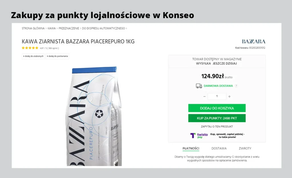 Bardzo istotne i korzystne dla naszych klientów jest to, że punkty nie mają terminu ważności. Można je zbierać przez dłuższy czas, np. kupując regularnie kawę, aby później wymienić je na wymarzony ekspres do kawy. Ponieważ jesteśmy sklepem online, program lojalnościowy działa wyłącznie w naszym sklepie www.konesso.pl. Do programu może przystąpić każdy klient, który zarejestruje u nas konto.
