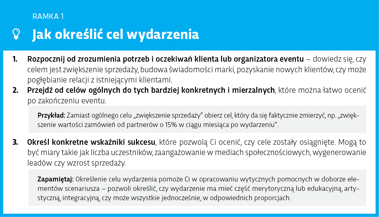 Na początku konieczne jest dokładne określenie celów i parametrów przedsięwzięcia. To jak projektowanie fundamentów, na których opiera się cała konstrukcja. Punktem wyjścia są cel wydarzenia i grupa docelowa.