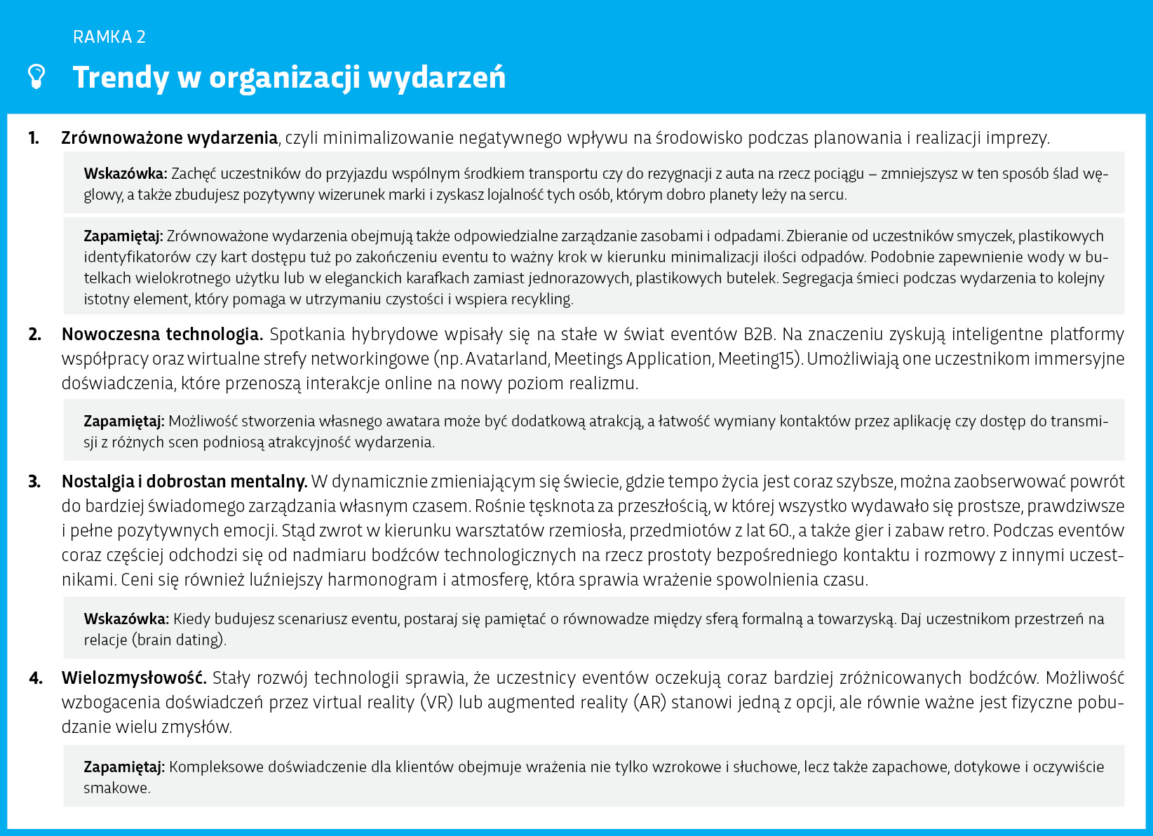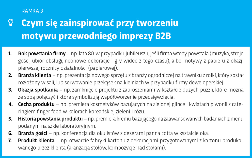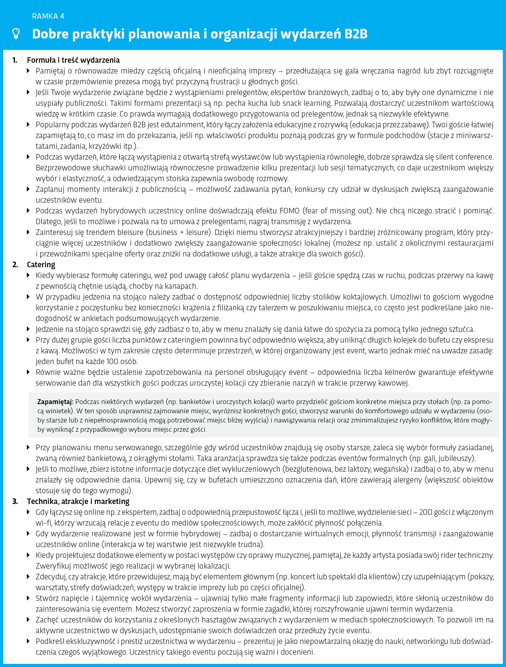 W ramce 4 znajdziesz listę przydanych wskazówek z informacjami, o czym warto pamiętać, a czego unikać podczas organizacji wydarzeń B2B.