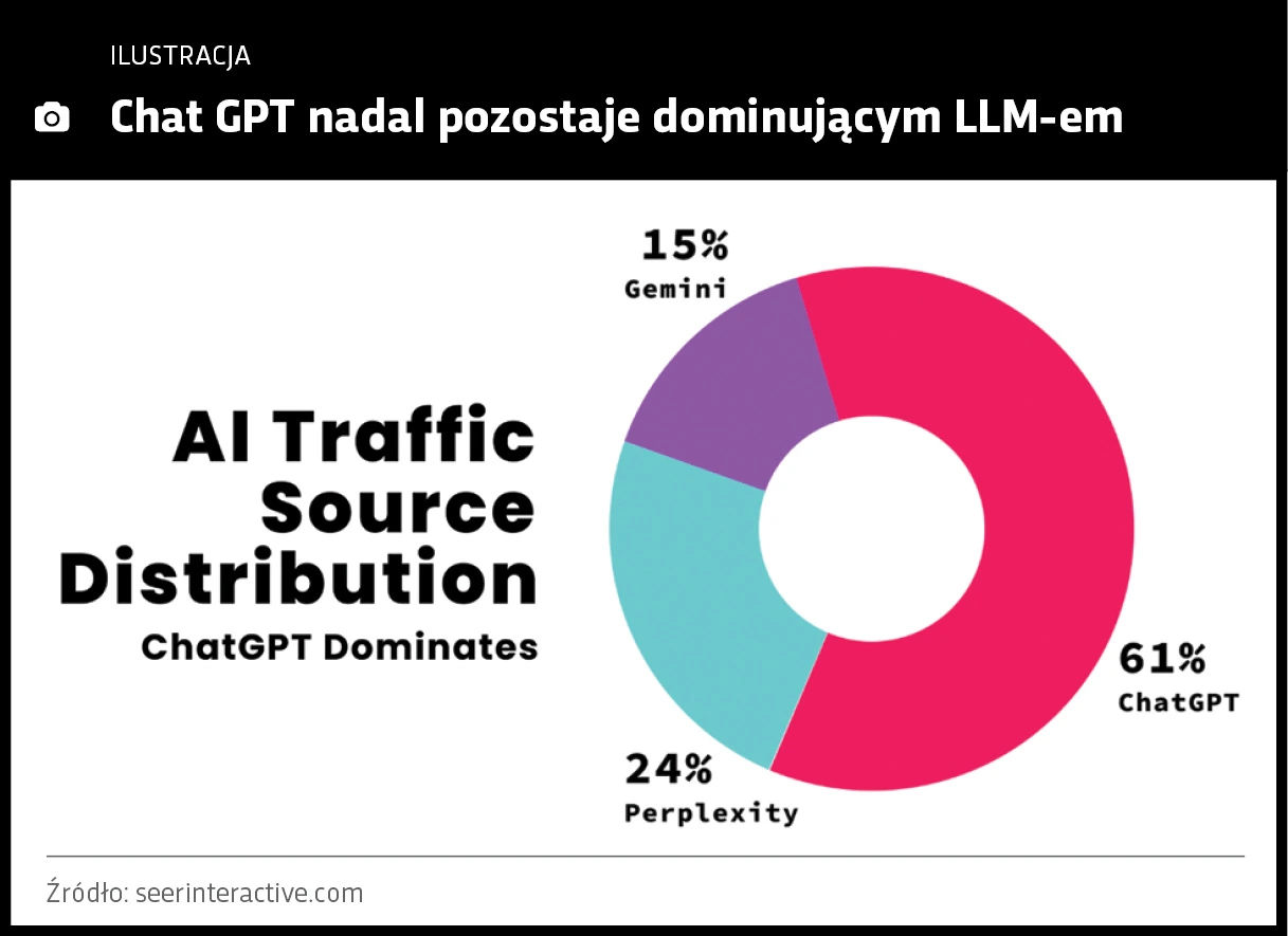 Kolejnym źródłem, o którym już mówiliśmy, są modele językowe. Obecnie najpopularniejszym rozwiązaniem na rynku jest ChatGPT, choć nie można pomijać innych graczy, jak Gemini, Perplexity czy Claude (ilustracja).