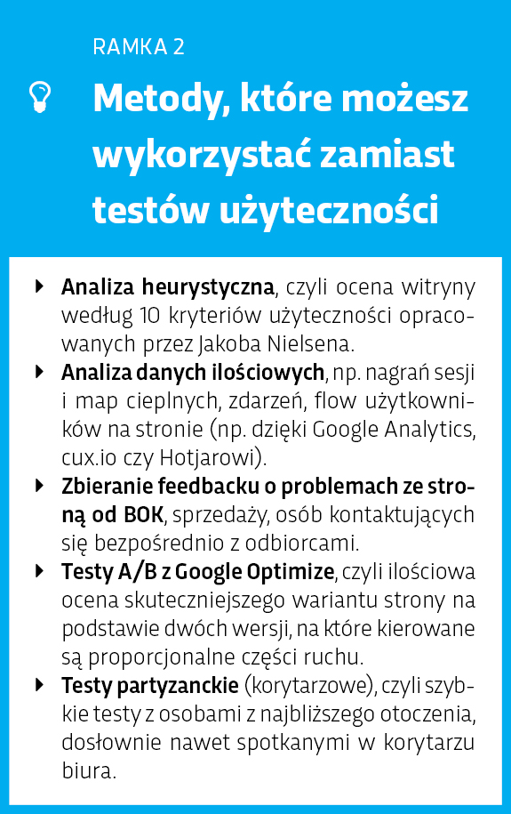 - jakie są inne metody, które możesz wykorzystać zamiast testów użyteczności.