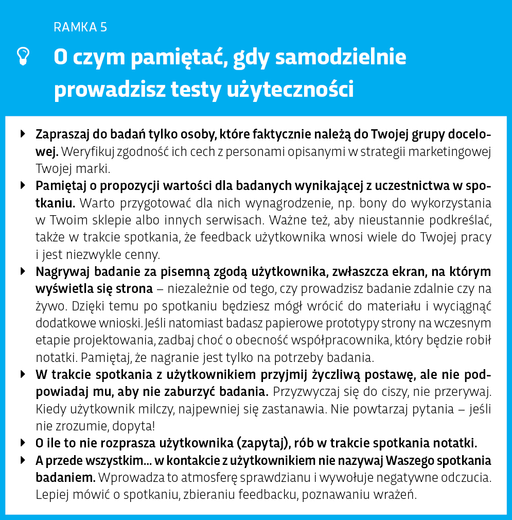 - Rekomendacje wynikające zbadań konfrontuj zawsze z designerami i deweloperami, aby je urealnić.